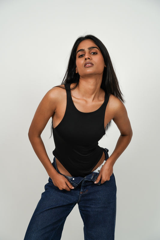 Round Neck Butter Bodysuit Sleeveless : Black
