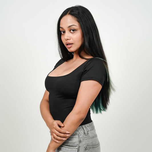 Scoop Neck Butter Bodysuit Half Sleeves : Black